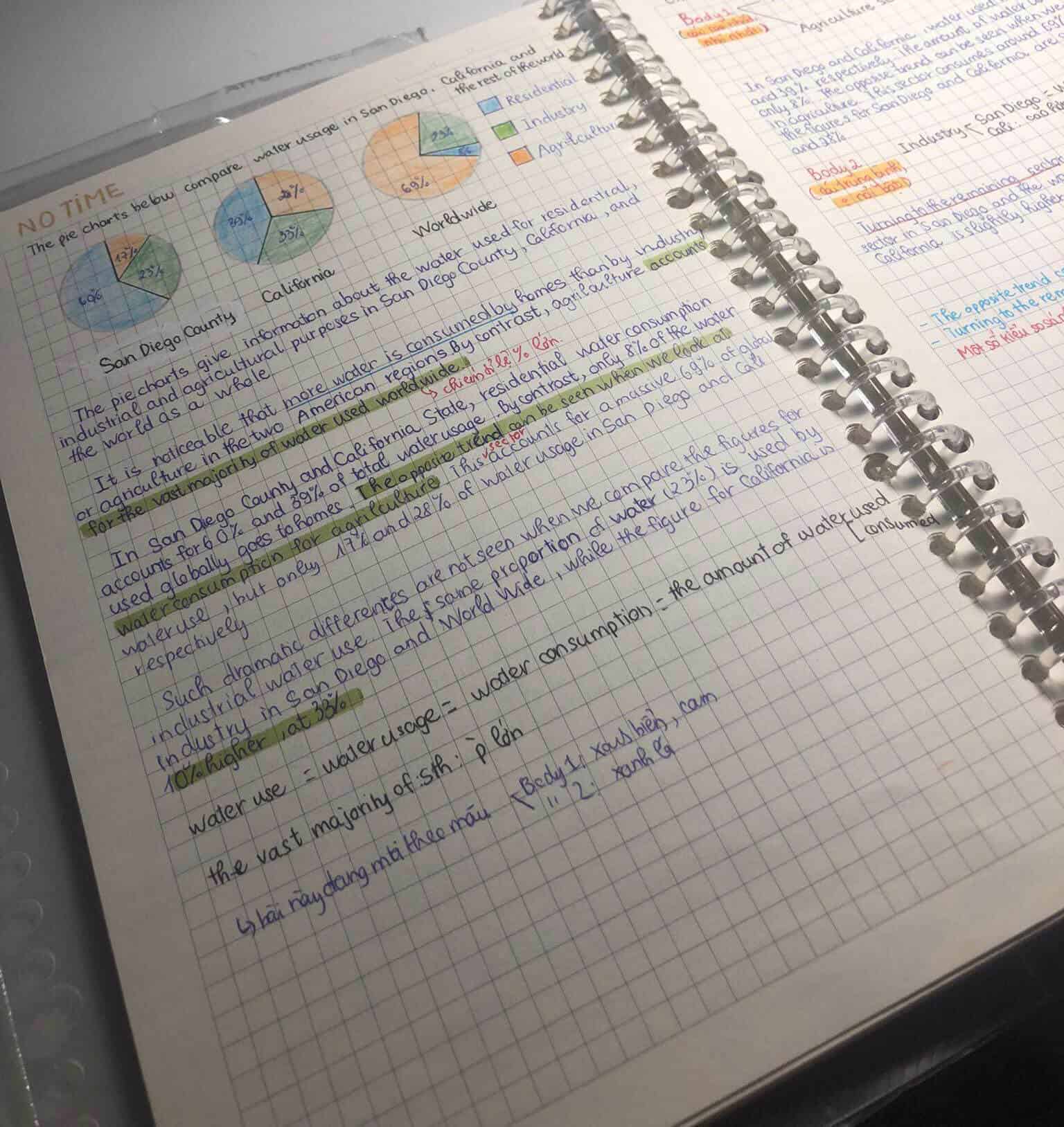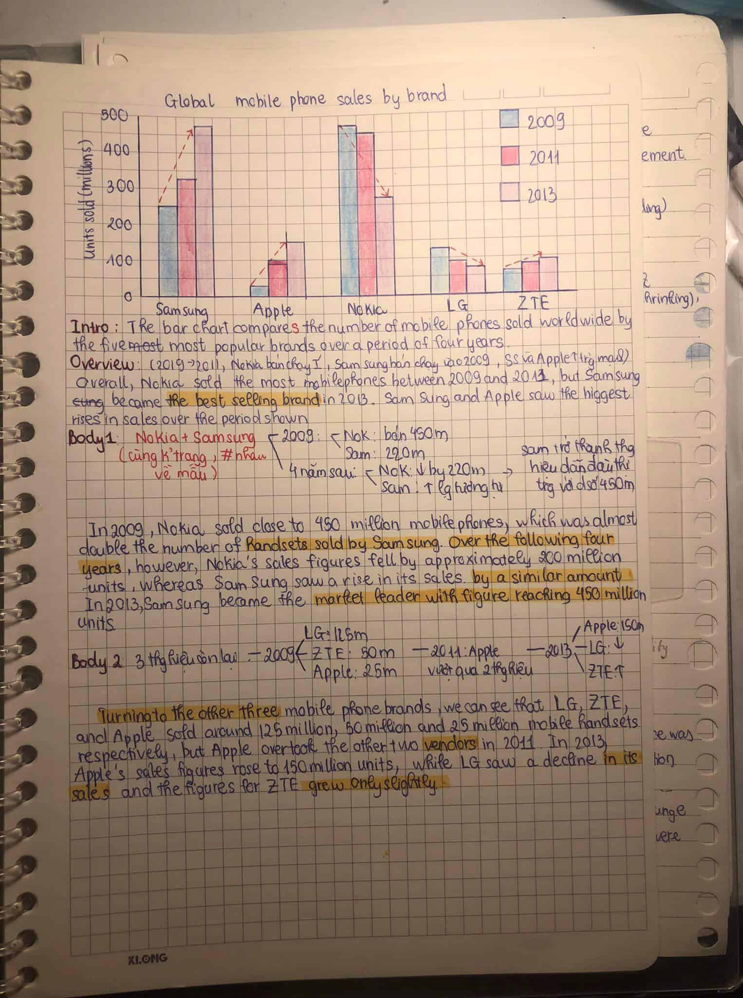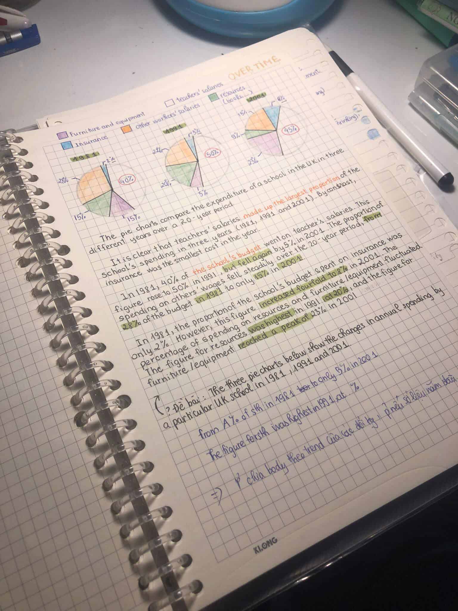 Chuyển qua kỹ năng Writing, về Task 1 em ôn theo mẫu trong khóa học của Huyền đưa ra để áp dụng được vô các dạng bài và còn Task 2 chủ yếu em học + phân tích bài mẫu trong ebook Ý tưởng và từ vựng cho 100 Writing Task 2, tập trung đọc lên ý tưởng và mỗi ngày luyện 1 dạng bài.