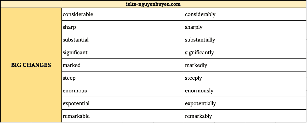 Các bạn có thể tham khảo thêm bộ từ vựng IELTS Writing Task 1 mà Huyền đã soạn tại ĐÂY.