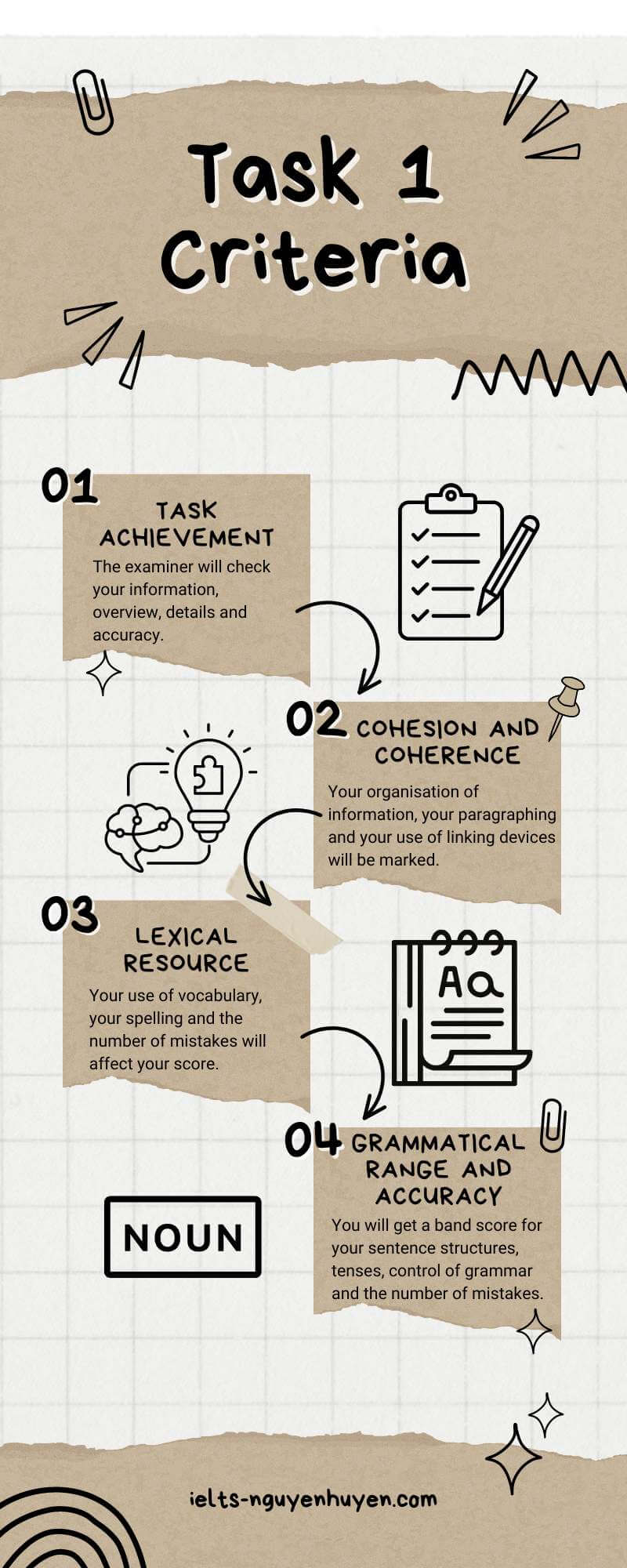 Bài thi IELTS Writing Task 1 được chấm dựa trên các tiêu chí sau đây: