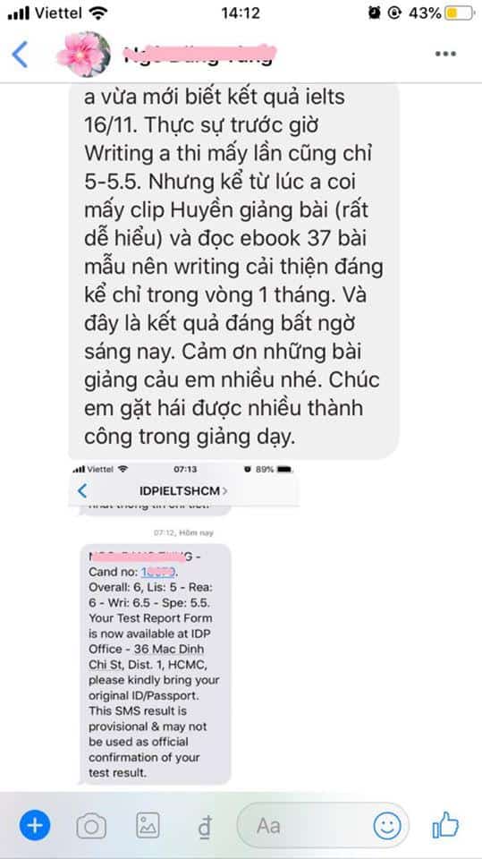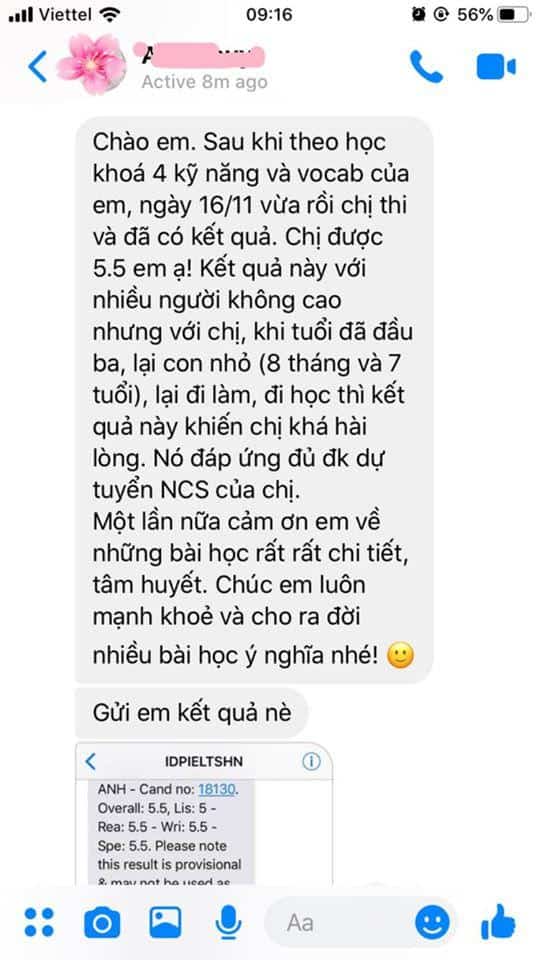 Dưới đây là một số kết quả mà các học viên của Huyền đã đạt được: