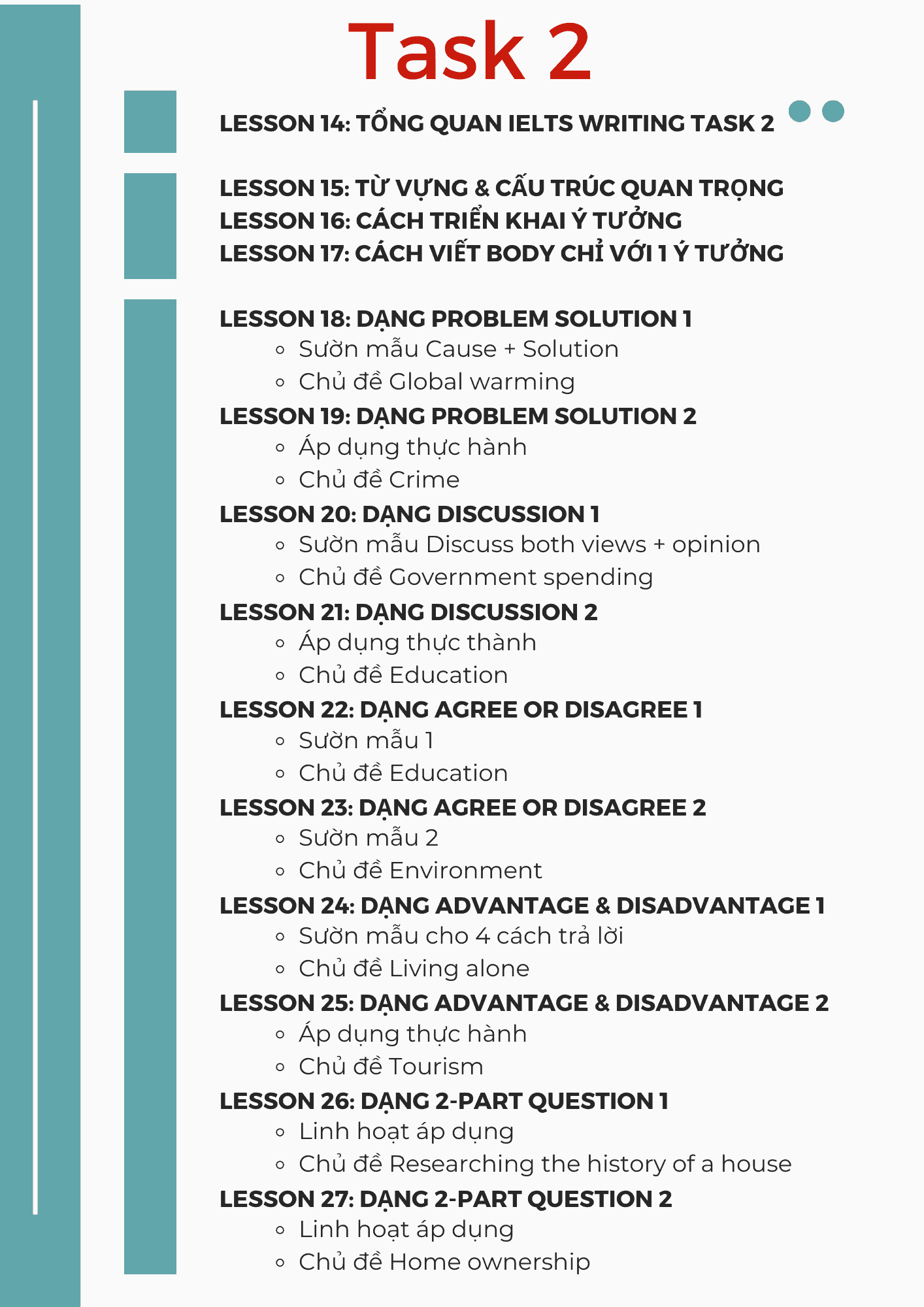 Với những bạn mới bắt đầu học IELTS Writing, bạn có thể tham khảo Khóa học IELTS Writing Online của Huyền tại đây nhé. Trong khóa học Huyền chia sẽ chi tiết cách làm từng dạng bài trong cả hai Task, tổng hợp các bảng từ vựng quan trọng, cấu trúc giúp ghi điểm.