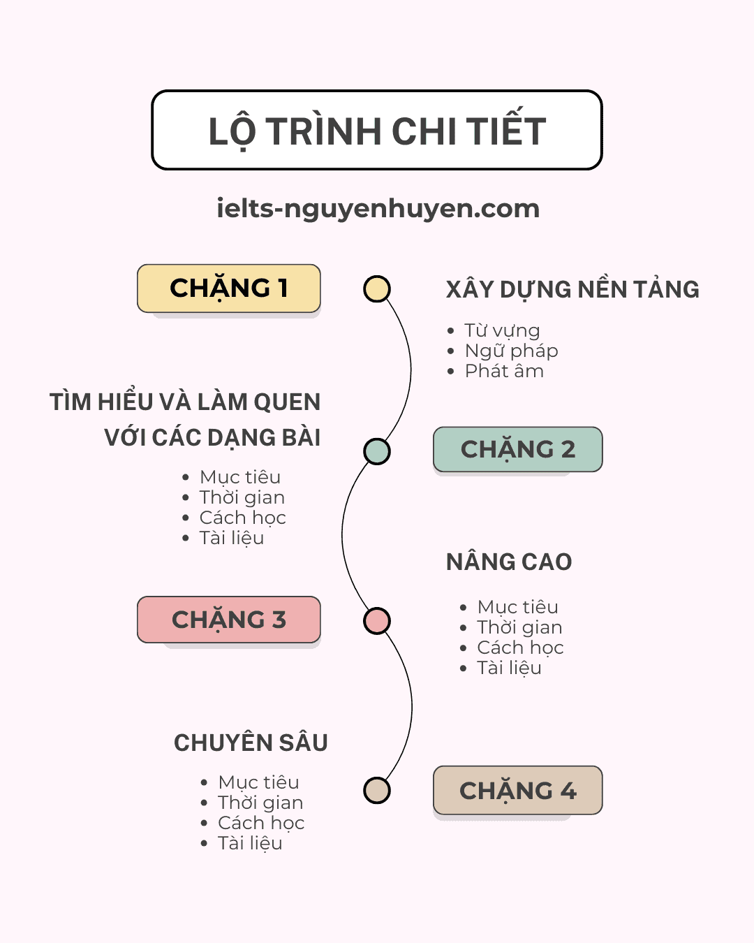 Với lộ trình chi tiết tự học IELTS Listening band 7.5+, Huyền sẽ chia thành 4 chặng sau: