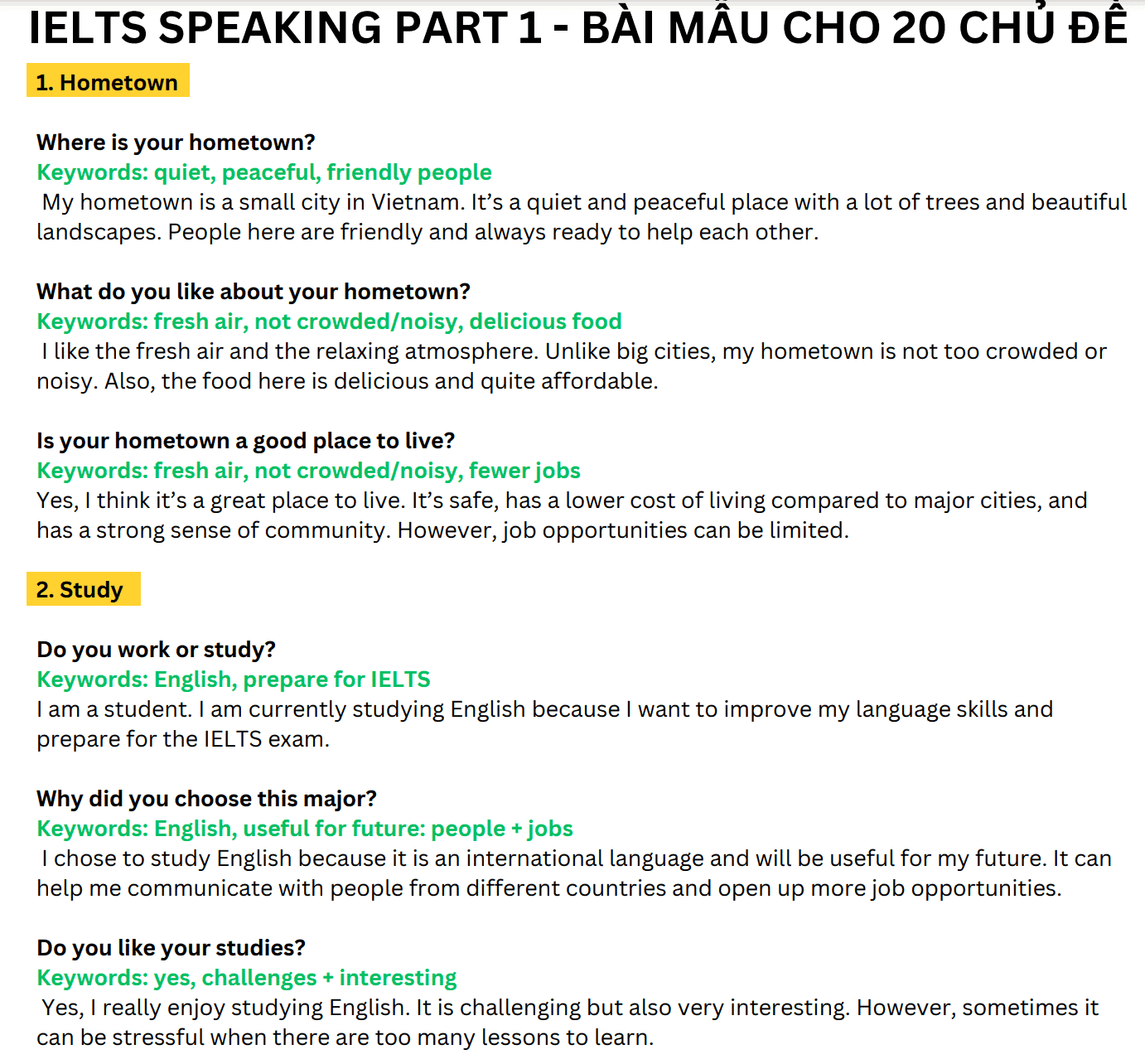 DOWNLOAD EBOOK BÀI MẪU IELTS SPEAKING PART 1