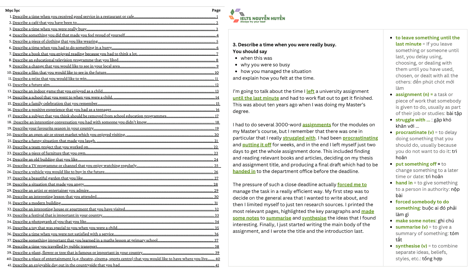 Bạn nào đang học IELTS Speaking tại nhà có thể tham khảo thử eBook này nhé.