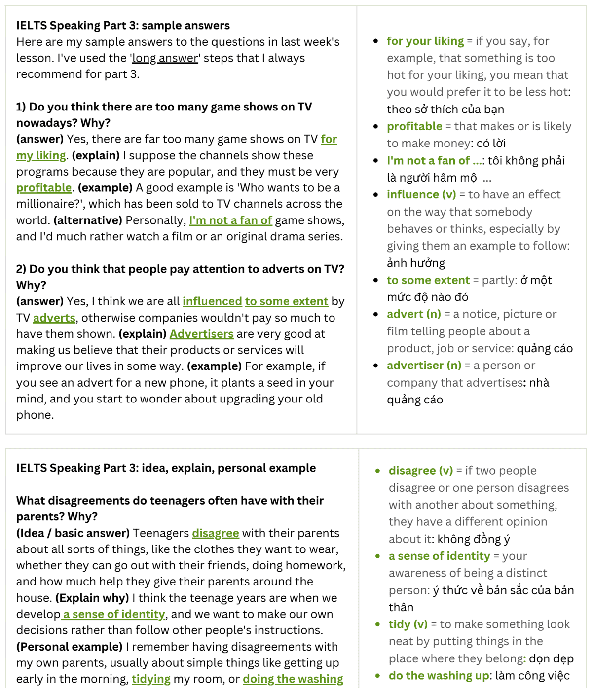 Tổng hợp bài mẫu IELTS Speaking cho cả Part 1, Part 2 và Part 3
