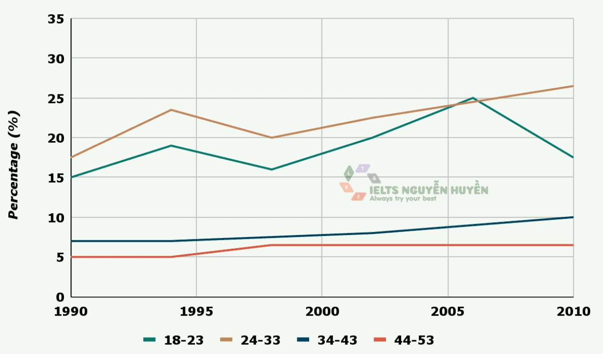 Task 1: The graph below shows the percentage of tourists who used different types of transport to travel within a particular nation between 1989 and 2009. Each tourist may have used more than one type of transport.