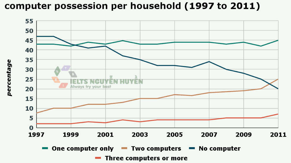 Task 1: The chart below gives information about computer ownership in the US from 1997 to 2011.