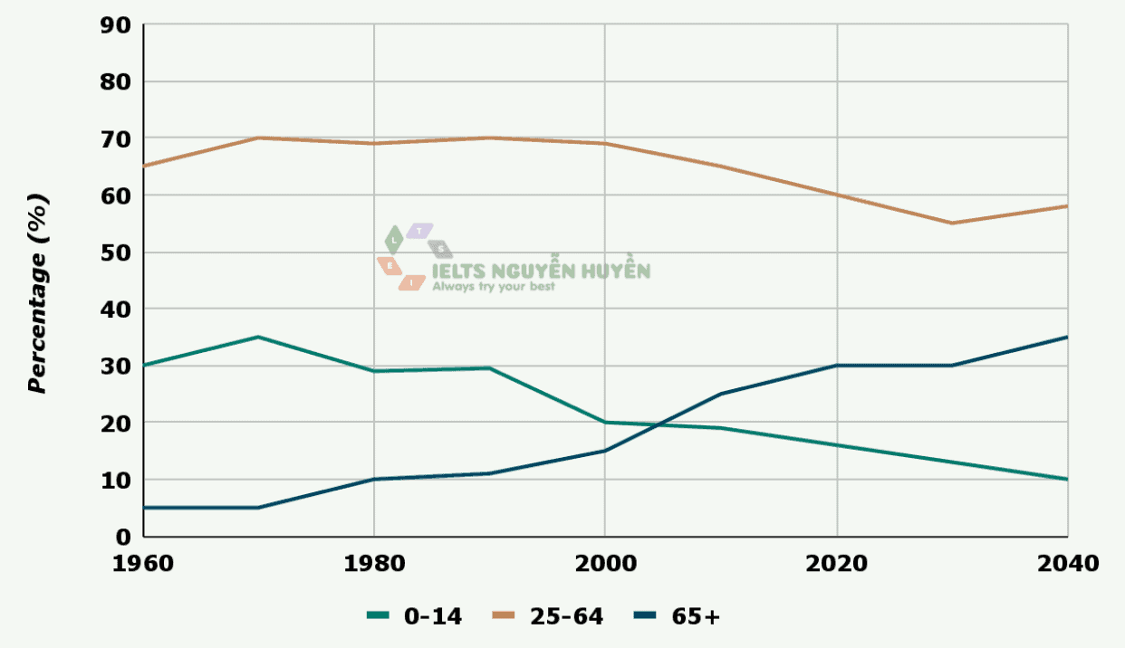 Task 1: The given graph shows the past and projected figures of the government spending as a percentage of GDP for the years 2000 to 2025 in three areas. Summarise the information by selecting and reporting the main features and make comparisons where relevant.