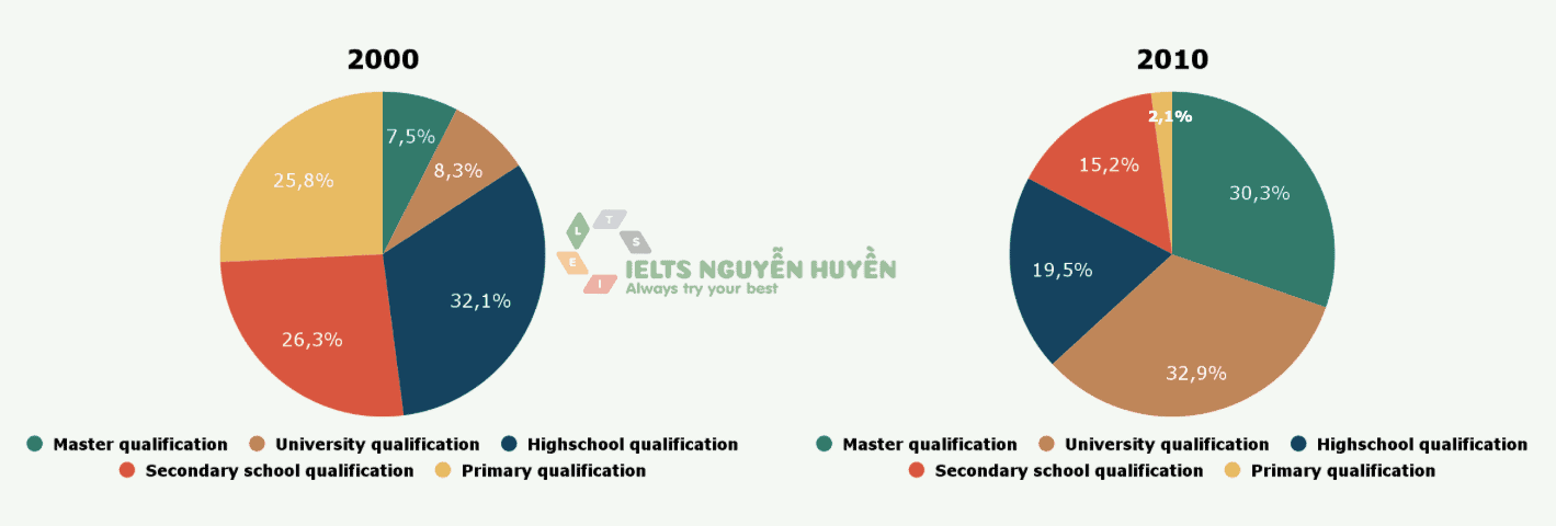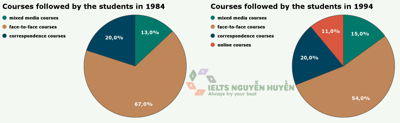 Task 1: The pie charts below show the different types of courses, which were followed by the students during the years of 1984, 1994 and 2004.