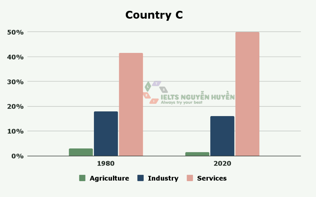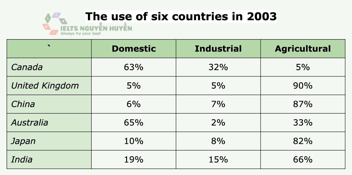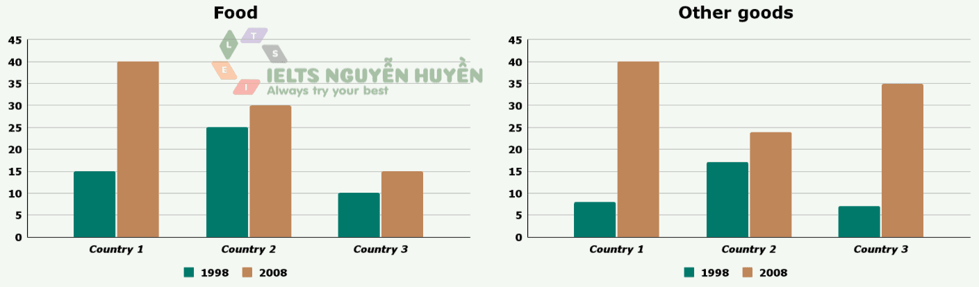 Task 1: The chart below shows the yield of wheat, barley, rice, and other grains grown in three different countries in 2001.