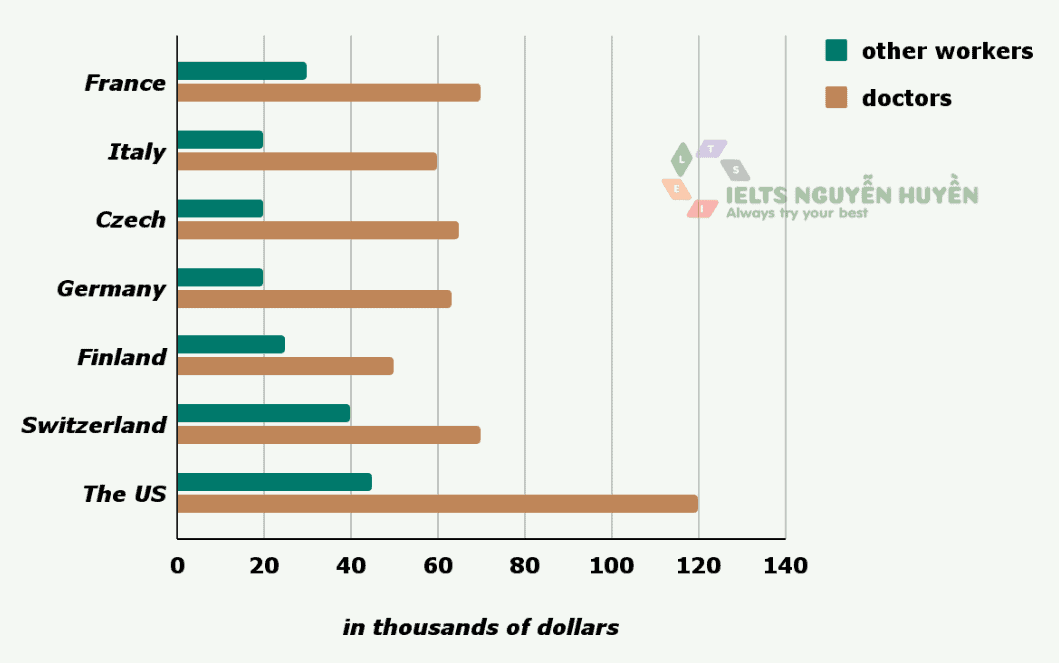 Task 1: The chart below shows annual pay (in thousands of dollars) of doctors and other workers in 7 countries in 2004.