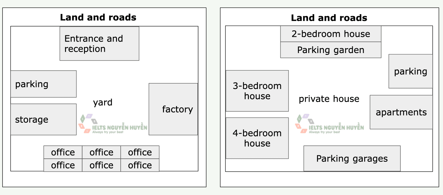 Task 1: The plans below show the site of mining town in the past and after redevelopment in the present day. Summarise the information by selecting and reporting the main features, and make comparisons where relevant.